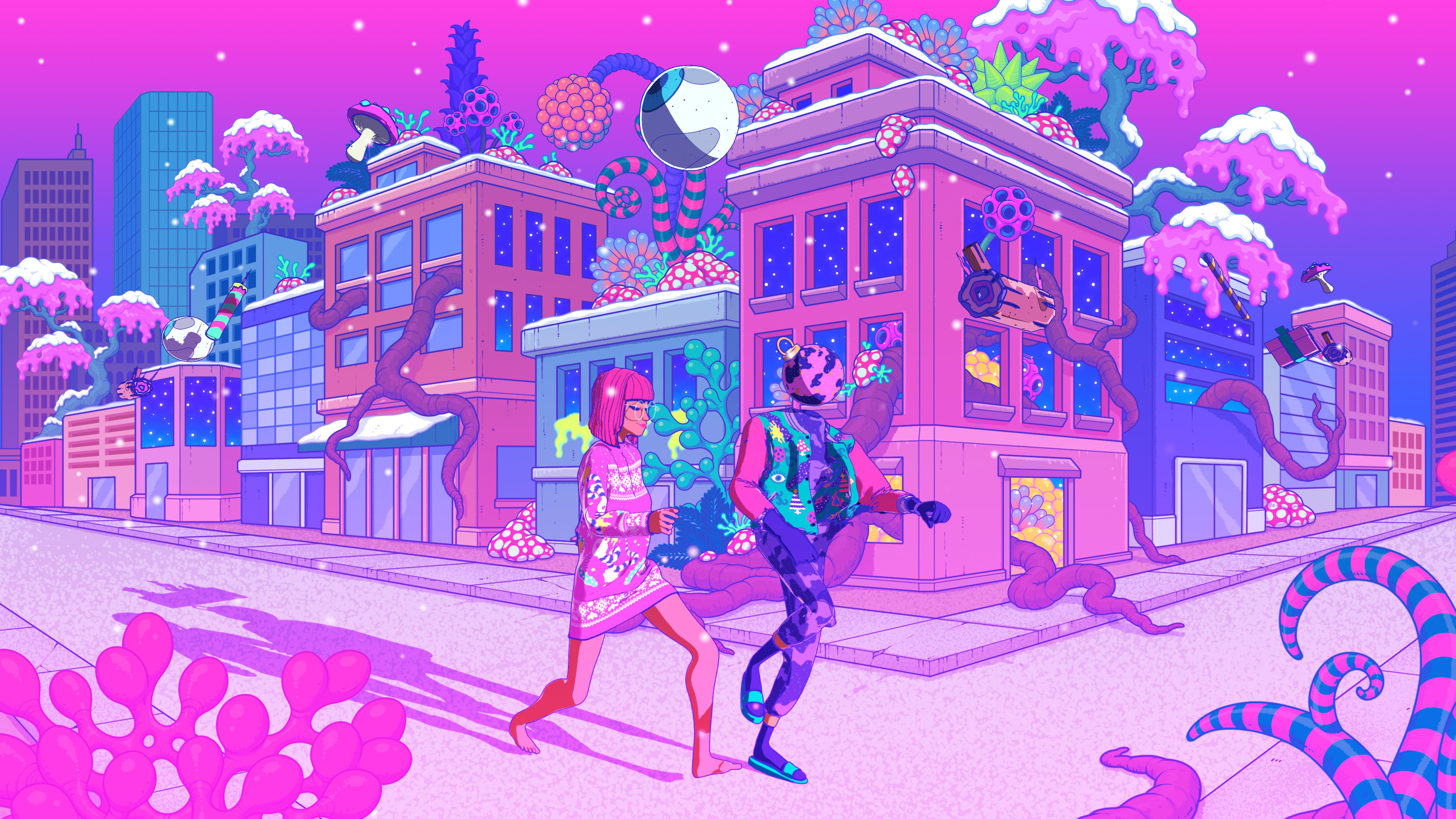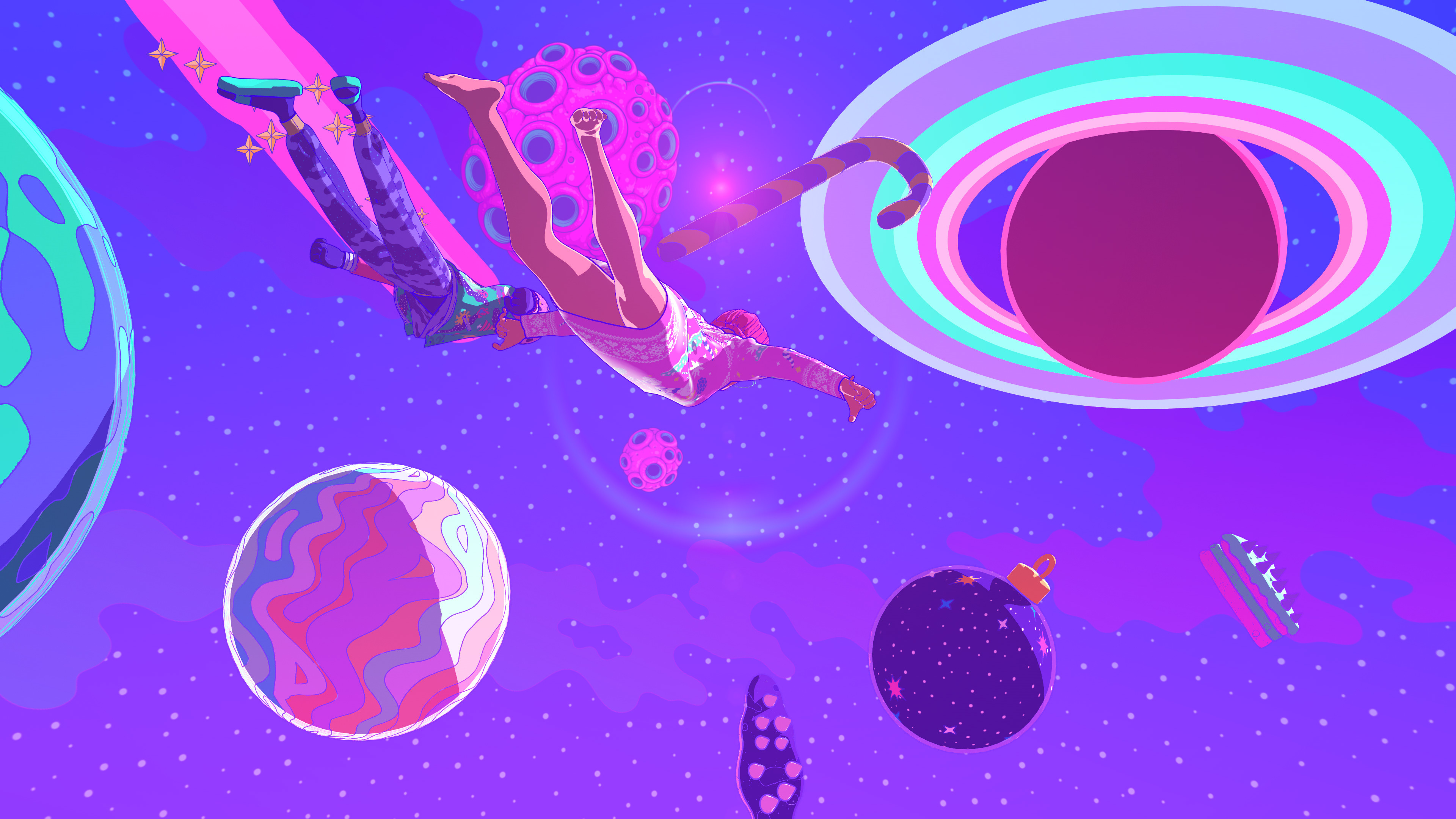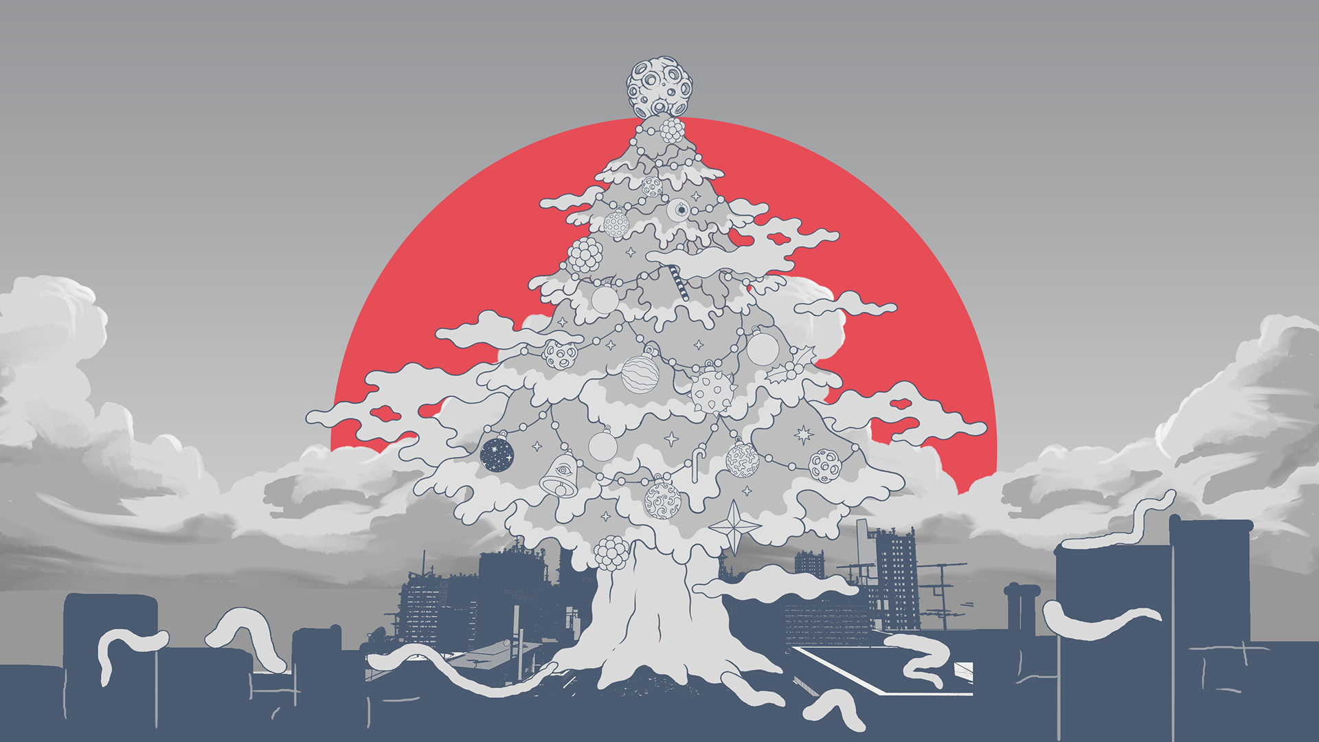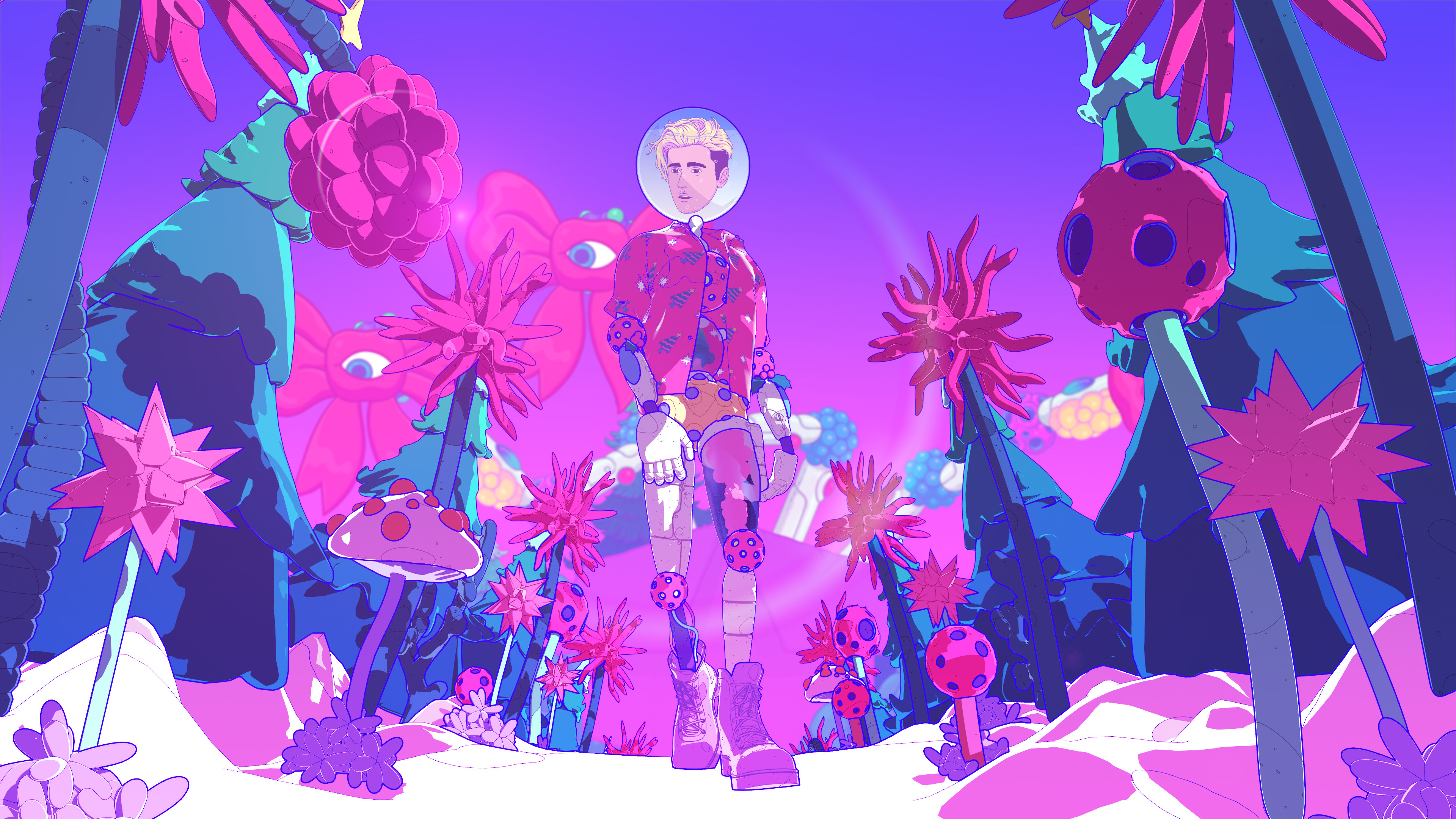 I collaborated with legendary South Korean artist Bang Sangho on this one. He is famous for creating detailed alien landscapes, surreal and highly imaginative. So naturally we came up with an inter-dimensional Christmas realm full of walking presents, floating hams, a celestial being who drops festive bombs on the world, a robot Justin and a mystical Christmas Wizard who creates all the presents in the world out of a black hole in his stomach. Yes, I have no idea how they approved it either!