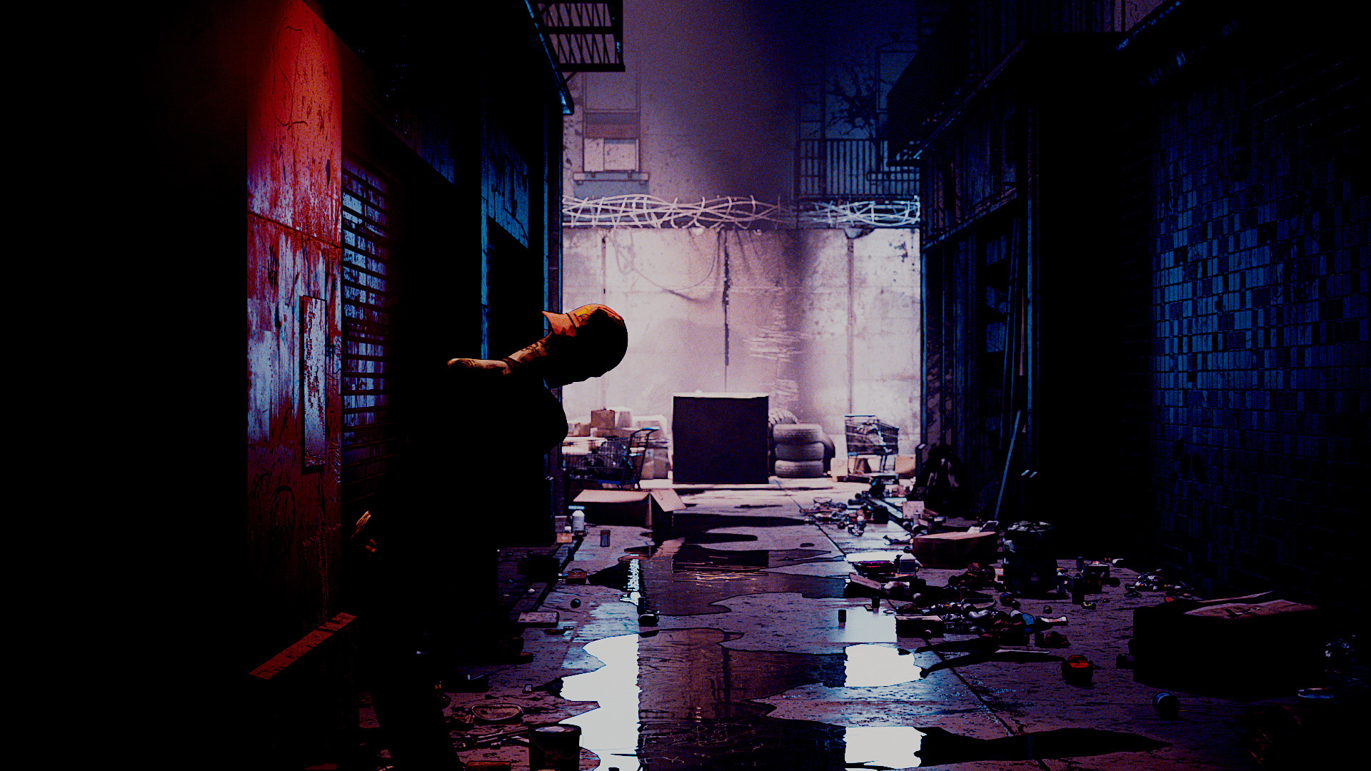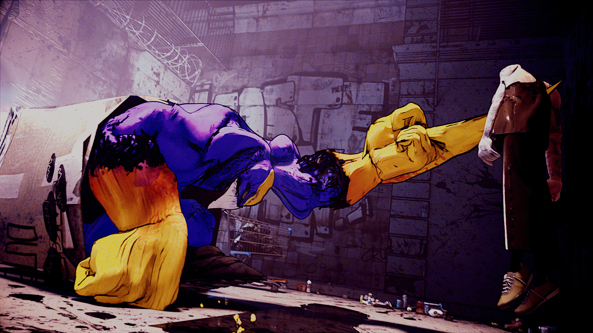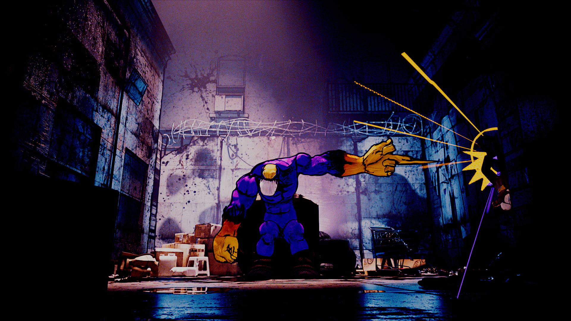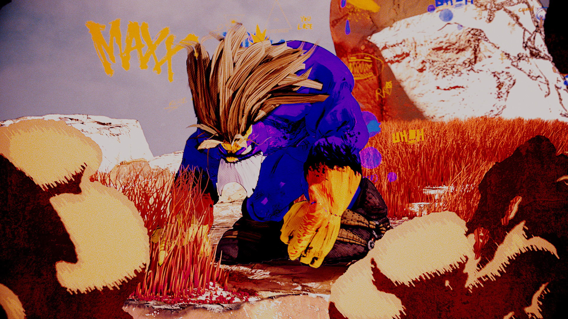 The Maxx comics have an overall inky aesthetic which I wanted to bring into the film texturally. The source material is some of the most incredible stylistic art I've seen in comics, so a comic book, illustrated style was important to get also without limiting the ability to animate him in 3D.