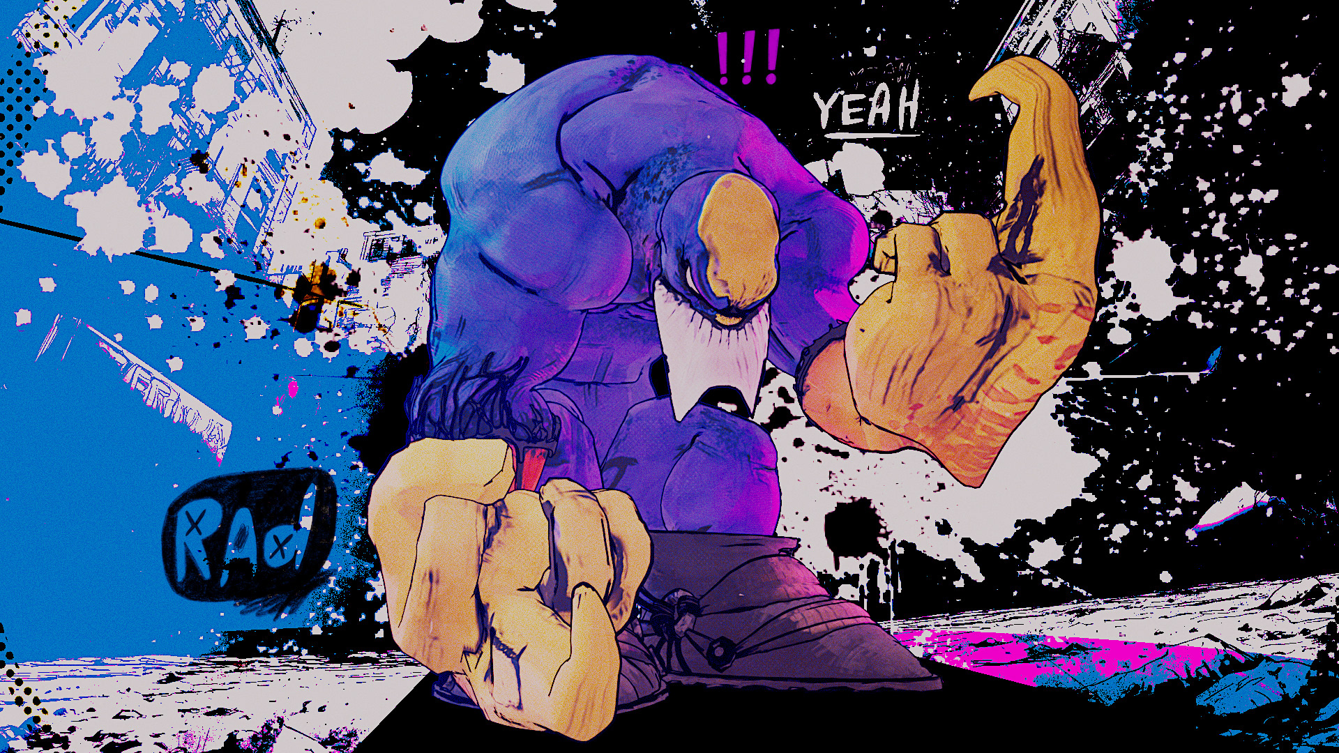 Rigging was tough, his arms are incredibly chunky with various muscle bulges. The texturing was a combination of toon shaders in Redshift and hand painting and texturing in Substance Painter.
